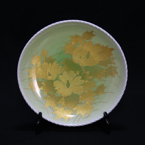吉田美統【人間国宝】九谷焼飾り皿 釉裏金彩芙蓉文(縄目)